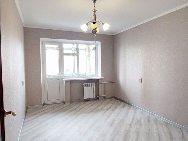 В квартире выполнен ремонт в светлых и спокойных тонах. Хорошая планировка с комнатой правильной прямоугольной формы и просторной кухней, в которой уже установлен кухонный гарнитур. Санузел совмещен, установлена новая качественная сантехника. С кухни есть выход на застекленную лоджию.