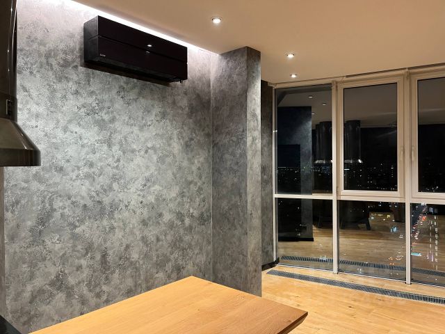 — В квартире дизайнерский ремонт (два санузла, удобная встроенная мебель с фурнитурой Blum, барная стойка из искусственного камня, теплый пол).