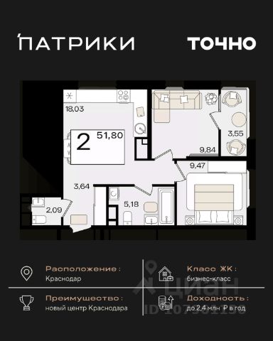 Продаются 2-комнатные апартаменты в сданном доме (Дом 75/6), срок сдачи: II-кв. 2023, общей площадью 46.4 кв.м., на 8 этаже. Апарт-отель The Grand Palace - новая точка притяжения на карте Краснодара. Проект формирует особенный облик деловой части города и вдохновляет его жителей. Апарт-отель - это новый для Краснодара формат жилья, где можно постоянно жить в более комфортных, чем в обычном доме условиях самому и с семьей или купить готовые апартаменты с ремонтом в качестве инвестиции для сдачи в красткосрочную или долгосрочную аренду. От обычного жилого комплекса апарт-отель отличает собственная внутренняя инфраструктура. Резидентам апартаментов доступны услуги зоны SPA и фитнеса, медицинского консьержа, ресторана авторской кухни, прачечной и клининга, коворкинга и лобби-бара. Все апартаменты продаются с ремонтом под ключ! Единый архитектурный стиль и продуманный до мелочей дизайн всех помещений и апартаментов надолго останется актуальным. Инфраструктура - На расстоянии менее 1 км. находятся крупнейшие торгово-развлекательные центры : СБС Мегамолл с кинотеатром, ресторанами, кафе, ТРК Галактика. - Рядом 2 premium фитнес-центра с бассейнами 50 GYM и X-FIT - 10 минут пешком. - Удачный район не только для отдыха, но и бизнеса: с оптовыми базами, офисными центрами, складскими помещениями. - Удобная транспортная развязка с выездом в любой район города, аэропорт и на трассу М4 к морю. - Множество остановок общественного транспорта, в том числе маршруток и трамвая в любой конец города. 15 минут пешком до детского сада и школы 24 Всё это обеспечит повышенный интерес и постоянный спрос на апартаменты, что гарантирует стабильный доход от рентабельной недвижимости в Краснодаре, цена на которую будет только расти.