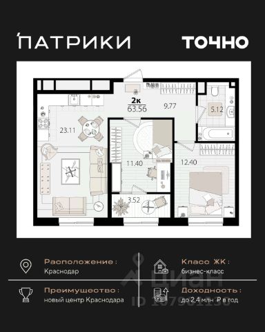 Продаем нашу уютную,видовую евро-3 квартиру в доме Комфорт+ класса ЖК Lime (застройщик один из лучших в Краснодарском крае - Девелопмент ЮГ).