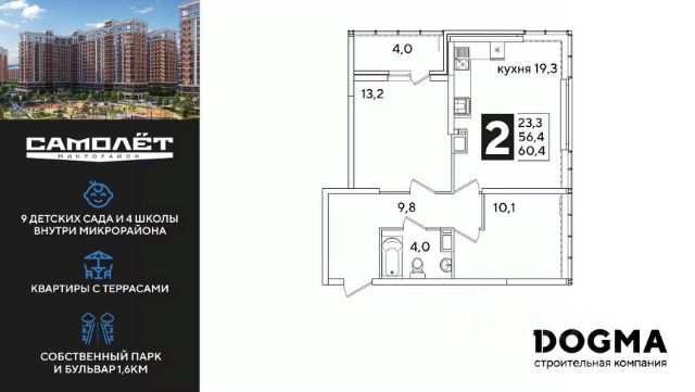 Продаётся 2-комнатная квартира в сданном доме (Литер 2.7), срок сдачи: IV-кв. 2024, общей площадью 50.7 кв.м., на 1 этаже. Расположение, транспортная доступность