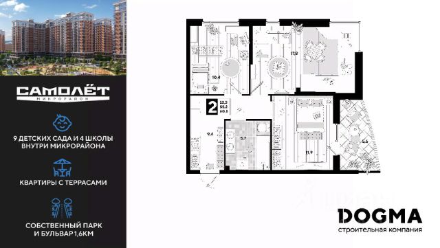 Продаётся 2-комнатная квартира в сданном доме (Литер 24 - 12 этап), срок сдачи: III-кв. 2024, общей площадью 56.8 кв.м., на 2 этаже. Расположение, транспортная доступность