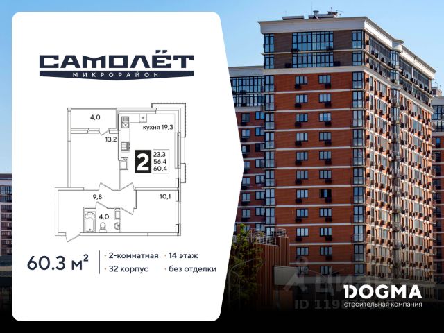 Продаётся 2-комнатная квартира в строящемся доме (Литер 10), срок сдачи: II-кв. 2026, общей площадью 65.29 кв.м., на 22 этаже. Расположение, транспортная доступность Жилой квартал "Славянка" из десяти 16- и 21-этажных домов и 5-уровневого наземного паркинга с земельным участком 8 гектар расположен в молодом Славянском районе на северо-западе Краснодара. В ста метрах проходит улица Красных Партизан, по которой можно быстро доехать в центр города или соседние районы, а в километре улица Западный обход, открывающая дорогу на трассу Р-268 (на север в сторону Тимашевска) или на северо-запад к Азовскому морю и в Крым. В пешей доступности расположены Академический сквер и Ботанический сад. Инфраструктура Цокольные этажи корпусов отданы под коммерческие помещения, где будут открываться магазины, офисы сервисных служб, компаний сферы услуг и пр. объекты инфраструктуры. Около домов комплекса расположены супермаркеты "Пятерочка" и "Магнит", аптека. В радиусе двух километров можно найти два детских сада, две общеобразовательных школы (16 и 63), школу-интернат 3, гипермаркет "Лента", оздоровительный центр "Аквалига", отделение почты и банка, торговый центр с кинотеатром, городскую больницу и Микрохирургию глаза им.Федорова. В шаговой доступности открыты фитнес-клубы KingFit и "Европа Фитнес". Район молодой, инфраструктура развивается по мере появления новых жилых комплексов. Рядом останавливаются автобусы, на которых можно доехать до школы 45 и 90, детской школы искусств, торгового комплекса "Галерея Краснодар", рынка и ТРЦ "Мега Адыгея-Кубань" с гипермаркетами Ашан, Леруа Мерлен, Metro, Спортмастер и М.Видео. Надежность застройщика ООО "КубаньГрадИнвестСтрой" было создано в 2012 году, хотя компания имеет опыт работы на строительном рынке Краснодара с 2006 года. Застройщик довольно быстро завоевал положительную репутацию. Среди очевидных преимуществ компании по сравнению с конкурентами: земельные участки на всех объектах оформлены в собственность, кредитные средства на строительство не привлекаются (только свои ресурсы и инвестиции дольщиков), используется монолитно-кирпичная технология домостроения. Кроме того, предлагаются гибкие условия покупки (материнский капитал, ипотека от нескольких банков, беспроцентная рассрочка до трех месяцев) и скидки пенсионерам, врачам, учителям, многодетным семьям, студентам, инвалидам. Компания владеет строительной техникой и занимается производством бетона. Проект жилого комплекса "Славянка" начат в 2016 году, к этому времени были уже сданы в эксплуатацию "Ставропольский" и "Парус". Продажи оформляются по договорам ДДУ в соответствии с ФЗ-214. Архитектура В состав ЖК "Славянка", расположенного в селитебной зоне города на территории 8 га, входит десять 16-21-этажных корпусов на 4620 квартир и 5-уровневый наземный паркинг на 3200 машиномест. Представлены студии 25-28 кв. м, однокомнатные квартиры 33-36 кв. м и двухкомнатные 54-63 кв. м. Вместо балконов сделаны лоджии. В двухкомнатных раздельный санузел, в студиях и одн
