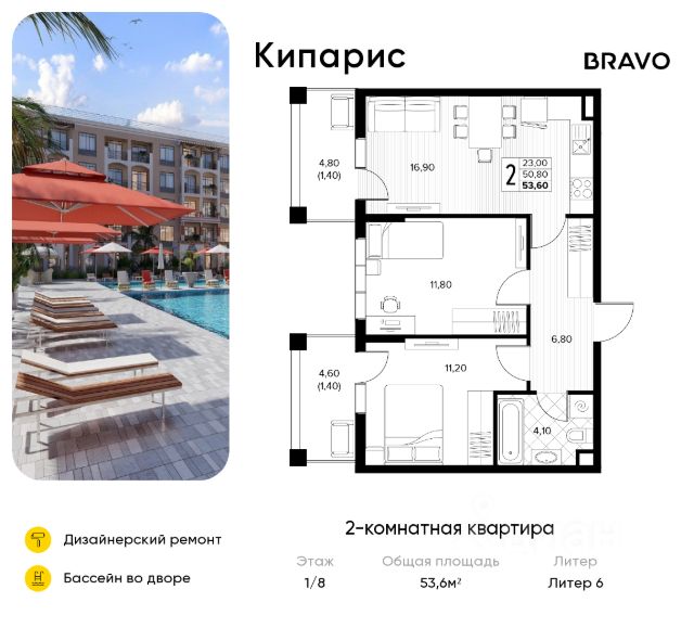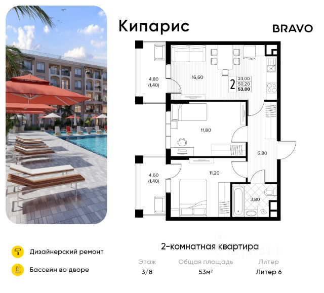 Продается 2-комнатная квартира площадью 55.80 кв. м без отделки, расположенная на 7 этаже, в новом жилом комплексе комфорт-класса "Кипарис". Прекрасный район, окруженный реликтовыми лесами и живописным рельефом гор. Адрес жилого комплекса - муниципальный округ Анапа, село Сукко, улица Мирная, дом 13. "Кипарис" - это жилой комплекс, где проявляется страсть к жизни. Здесь собраны все условия для активного отдыха, 19 бассейнов на территории, собственная развитая социальная инфраструктура и множество квартир с вдохновляющими пейзажами на долину Сукко. Транспортная доступность • Регулярный общественный транспорт для пешеходов • 3 км до Черного моря • Кипарисовое озеро в 7 минутах езды • 12 км до Анапы • 25 км до вокзала • 34 км до аэропорта Архитектура, вдохновленная побережьем моря В состав проекта "Кипарис" вошло 7 домов высотой от 4 до 8 этажей, архитектура которых вдохновлена стилем средиземноморского возрождения. Открытые балконы дают возможность быть ближе к природе. Уникальные террасы, мастер-спальни, просторные гардеробные, лоджии и окна с красивым видом - в планировках продумана каждая мелочь, что и формирует особое ощущение комфорта. Особое внимание в комплексе уделено созданию зон для отдыха и развлечений: на территории расположено 19 бассейнов, которые обеспечивают жителям возможность наслаждаться водными процедурами в любое время, создавая атмосферу курорта прямо у вас дома. Это идеальное место для семейного досуга, где можно расслабиться, позагорать или провести время с друзьями. Бассейны также оборудованы зонами для активных игр и отдыха, что делает "Кипарис" идеальным местом для тех, кто ценит комфорт и активный образ жизни. Насыщенное благоустройство Дом в долине Сукко - это не только бескрайние морские виды, зеленые леса и горы, не только полезный морской воздух, насыщенный ароматом краснокнижного можжевельника и сосен, но и также обширное благоустройство, где резидентам каждый день доступно все необходимое для комфортного отдыха. Во дворе каждого дома находится комплекс бассейнов, уютные шезлонги с зонтиками, изолированные детские и спортивные площадки, теннисные корты, зоны для пикников и барбекю. Двор закрыт от машин: за территорией комплекса предусмотрен паркинг на 3563 машино-места. Инфраструктура • Салоны красоты, кафе, магазины, аптеки на первых этажах; • Собственные детский сад на 200 мест и школа на 1100 мест; • Яхтинг, серфинг и дайвинг в шаговой доступности; • Винодельни, заповедники и достопримечательности в ближайшем окружении. Чтобы узнать подробности, обращайтесь за консультацией по телефону.