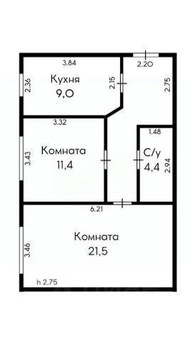Комната 15 м², комната 11,5 м², кухня 9 м², балкон 3,7 м².