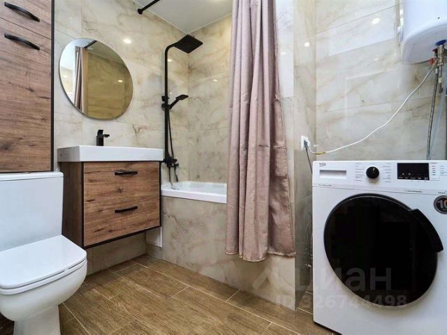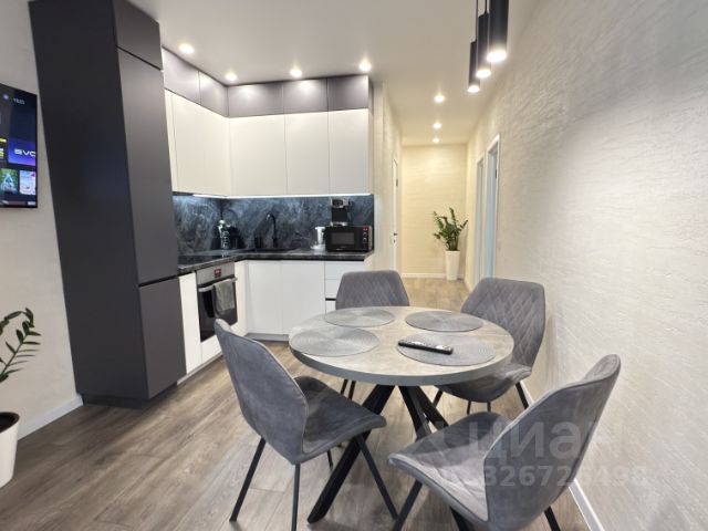 В квартире сделан ремонт от застройщика . Из мебели остается : кухонный гарнитур со встроенной техникой, диван в кухне, стол, стулья , в гостиной - кровать , тумба со шкафами под ТВ, шкаф-купе, комод , сплит-система, в спальне - шкаф , остальная техника по договоренности.