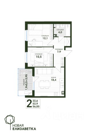 — 4 комнаты с гибкими вариантами зонирования (возможна реализация 2 больших спален + просторная кухнягостиная).