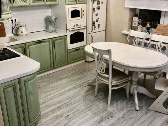 Кухня - 14,4кв.м: встроенная бытовая техника Gorenje(варочная панель, духовой шкаф, вентиляционная вытяжка, встраиваемая микроволновая печь, холодильник, посудомоечная машина), раздвижной обеденный стол, стулья из массива ясеня, раскладной диван(итальянский каркас выполнен из массива дерева). Супер моющиеся флизелиновые обои. Фасад кухни выполнен из массива дерева.