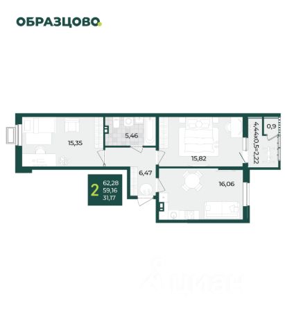 Купить 2-комнатную квартиру рядом со школой на улице Штурвальная в городе Краснодар