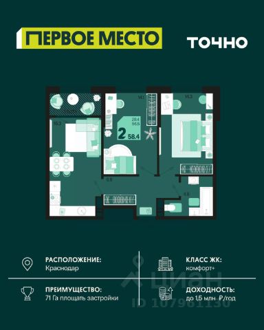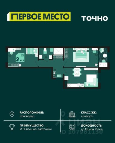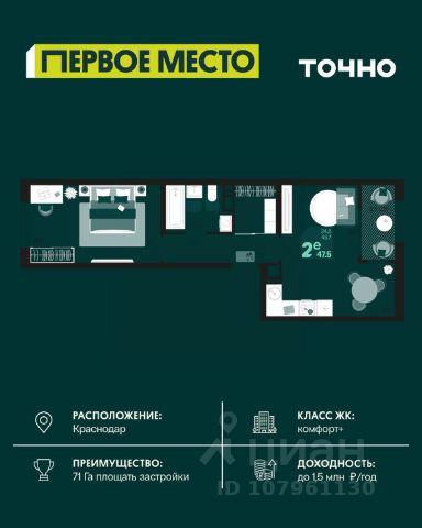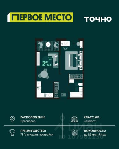 Жилой район "Первое место"- один из самых масштабных проектов в России. На территории 71 га 18 кварталов, 31 дом переменной этажности от 8 до 18 этажей, собственный парк 9 га, храмовый комплекс, пешеходный бульвар "Круг семьи", детские и спортивные площадки, мангальные зоны и различные локации для отдыха. В шаговой доступности действующие муниципальные образовательные учреждения: школа на 1 100 мест и детский сад на 250 мест. Помимо этого, в жилом районе "Первое место" построятся школа на 1700 мест с крытым 25-метровым бассейном и 5 детских садов на 1 490 мест. На первых этажах многоуровневых парковок "паркхабов" разместится более 61 тыс м2 коммерческих помещений. Жителям будут доступны собственный фитнес-центр, кафе, рестораны и магазины. В каждом подъезде предусмотрены дизайнерские холлы в стиле лобби отелей, консьерж-сервис, лапомойки, отдельные колясочные и велосипедные. Также в домах будут просторные кладовые помещения и комнаты для хранения почты с почтоматами для получения посылок из маркетплейсов.
