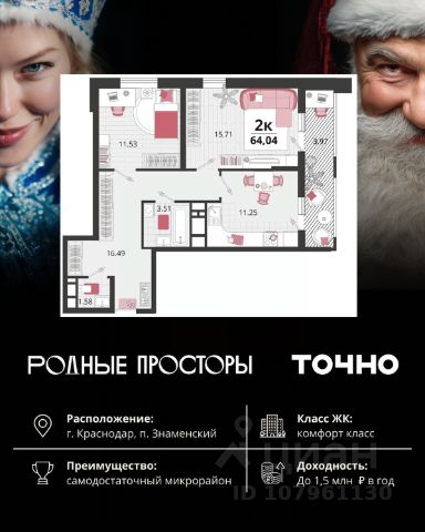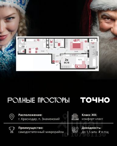 Продается квартира-студия в Жилом комплексе "Родные просторы"! В квартире выполнена качественная предчистовая отделка: Выровненные и подготовленные для отделки финишными материалами стены — улучшенная штукатурка стен. Подготовленный к укладке покрытия пол — стяжка пола. Коммуникации, выведенные в специальных местах в санузлах и кухонной зоне. Металлические входные двери с внутренней фрезеровкой и 2 замками. Металлопластиковые окна с долговечной фурнитурой. Радиаторы со встроенными терморегуляторами. Гидроизоляция пола санузлов. Крутая комплексная застройка территории с развитой инфраструктурой - на территории комплекса расположены школа на 1550 мест, 3 детских сада на 800 мест, поликлиника и частные клиники. На первых этажах домов расположены коммерческие помещения. Дворы свободны от автомобилей. Для автовладельцев предусмотрено более 2000 мест на открытых парковках по периметру микрорайона, и многоуровневые крытые наземные паркинги. Большая часть микрорайона оборудована пешеходными зонами и благоустроенными придомовыми территориями со спортивными площадками и большими детскими игровыми пространствами. Вся инфраструктура района находится в пешей доступности и располагаться внутри микрорайона. Рядом трасса М-4 - удобный выезд в сторону моря! Звоните прямо сейчас и покупайте квартиру в классном жилом комплексе!