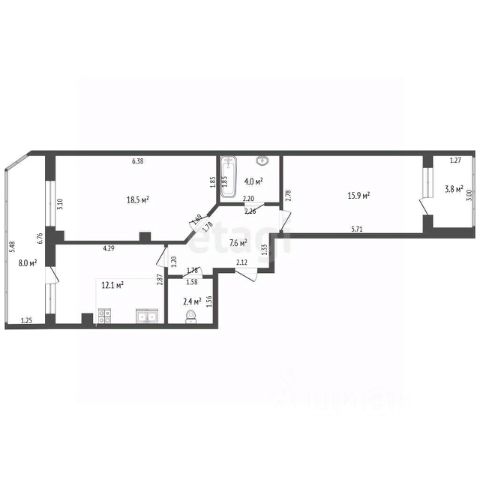 Квартира не угловая, с продуманной планировкой и большой кухней 15,5 м²