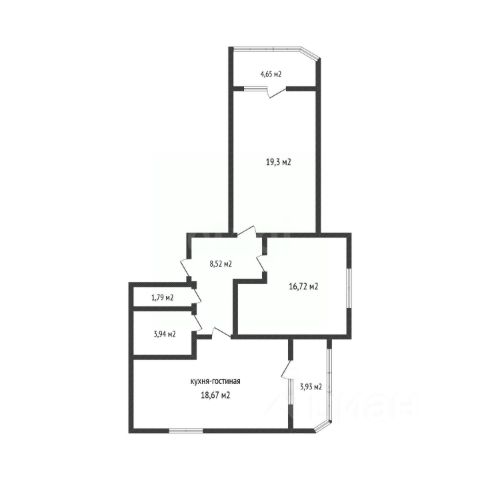 Кухня-гостиная размером 18,67 м2 отлично впишется в любые интерьерные решения, две комнаты 19,3 м2, 16,72 м2, предоставляют достаточно пространства для создания комфортной зоны отдыха.