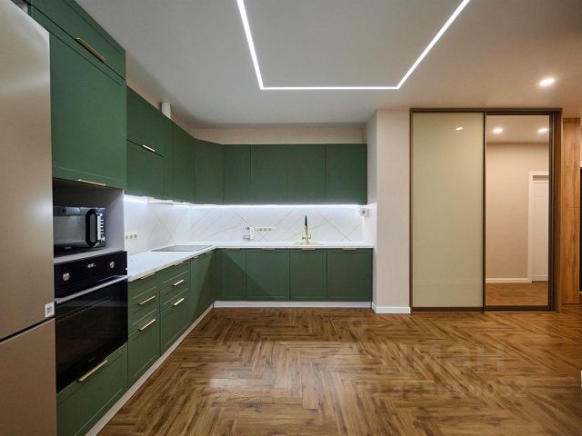 В квартире выполнен новый ремонт в светлых тонах. Хорошая планировка с комнатами правильной прямоугольной формы и просторной кухней. Имеется выделенная зоны под кухонный гарнитур и зону отдыха. Санузел совмещен, установлена новая качественная сантехника, выложен дорогой керамогранит.