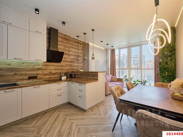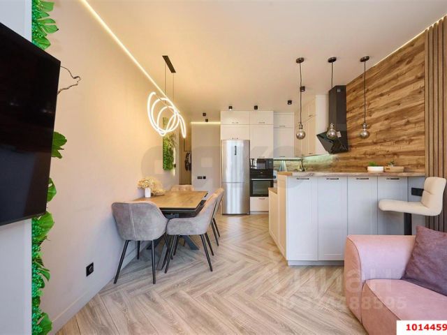 В квартире сделан отличный ремонт, большая кухня-гостиная, есть все необходимое: мебель и техника. Ремонт выполнен из качественных материалов, уделено внимание каждой детали.
