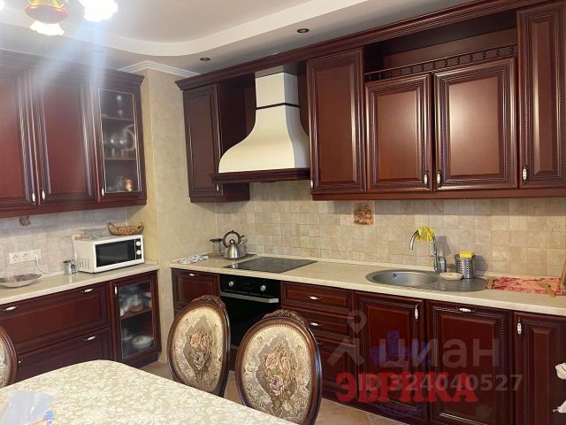 На кухне установлен дорогой гарнитур с хорошей бытовой техникой. Посудомоечная машина 60 см фирмы Electrolux, духовой шкаф фирмы Electrolux, варочная панель фирмы Electrolux, двухметровый холодильник фирмы Bosh. Установлена вытяжка над плитой. Фильтры для очистки воды, удобная двойная раковина, кран Grohe. Барная стойка, светильники над барной стойкой, можно поставить кофе машину и насладиться любимым напитком.