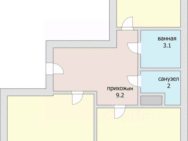 Продам квартиру в предчистовой отделке. На схеме рядом с квартирой студия. Студия так же продается. Можно объединить их вместе, получится трешка с тремя спальнями, кухней-гостиной и тремя сан.узлами.