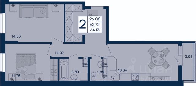 2 комнатная квартира 34.89 м² с ремонтом, на 4 этаже в жилом комплексе "Дом 101". ЖК Дом 101 - это уникальное пространство на территории 101 га. Парк 20 га с спортивными площадками и амфитеатром. Школа на 1725 мест и пять детских садов. Благоустроенные дворовые территории с детскими площадками и зонами отдыха создают комфортную среду для семей. 1303