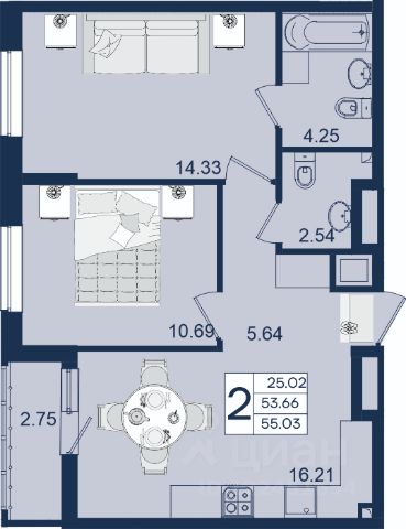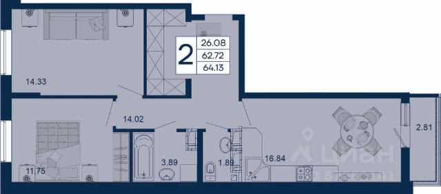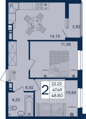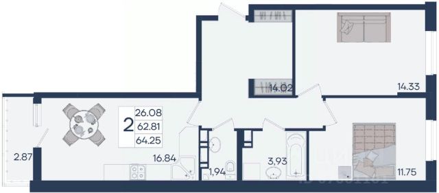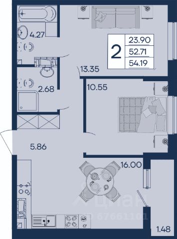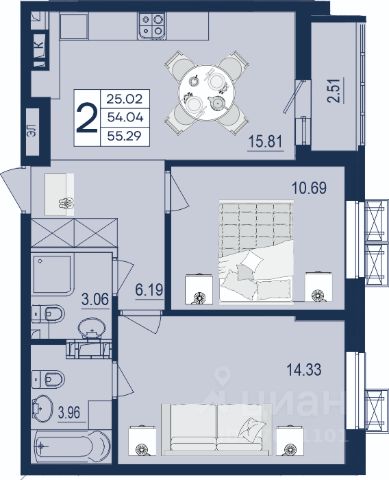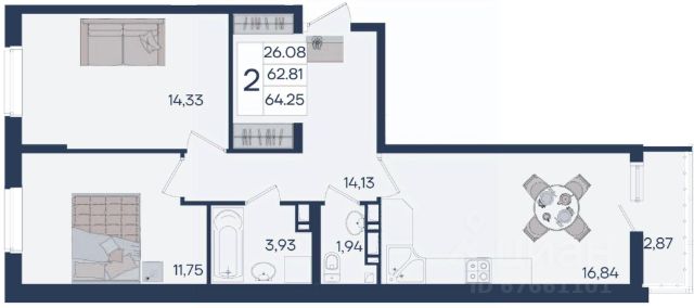 2 комнатная квартира 34.89 м² с ремонтом, на 4 этаже в жилом комплексе "Дом 101". ЖК Дом 101 - это уникальное пространство на территории 101 га. Парк 20 га с спортивными площадками и амфитеатром. Школа на 1725 мест и пять детских садов. Благоустроенные дворовые территории с детскими площадками и зонами отдыха создают комфортную среду для семей. 1303