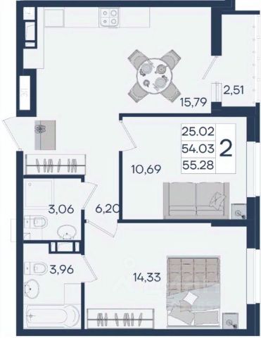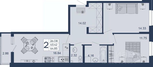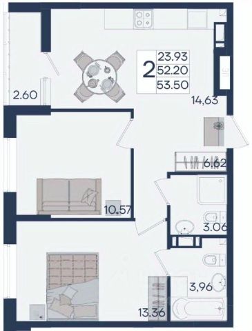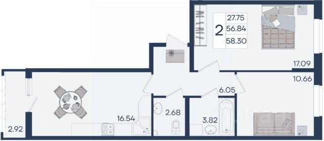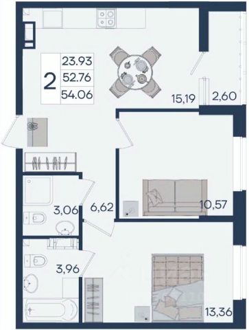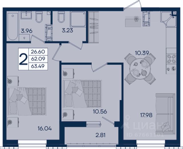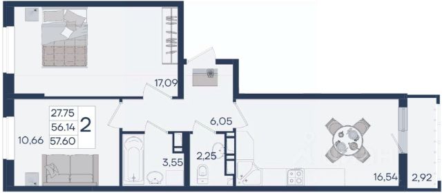 2 комнатная квартира с ремонтом 57.6 м², на 6 этаже в жилом комплексе "Дом 101". ЖК Дом 101 - это уникальное пространство на территории 101 га. Парк 20 га с спортивными площадками и амфитеатром. Школа на 1725 мест и пять детских садов. Благоустроенные дворовые территории с детскими площадками и зонами отдыха создают комфортную среду для семей. 1852