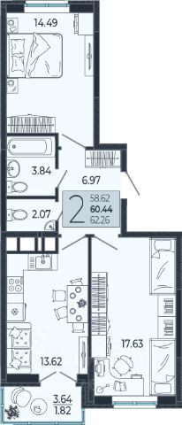 Продаётся 2 -комнатная квартира площадью 50,72 кв. м на 6 этаже в новом современном комплексе комфорт-класса от строительной компании "КОНТИНЕНТ ГРУПП" в одном из самых быстроразвивающихся районов города. ЖК ЭСТЕТ — ЭТО: — монолитно-кирпичный дом — эргономичные планировки от студий до 3-комнатных квартир; — витражное остекление; — лапомоечные и колясочные в каждом подъезде; — подземный и наземный паркинг; — система "Умный дом"; — закрытый двор и система видеонаблюдения; — зоны для отдыха и занятий спортом; — детские площадки; — озеленение с тематическими площадками; — развитая инфраструктура, в шаговой доступности школы, детсады, больницы, поликлиники, новый ТЦ. Компания работает по 214 ФЗ, с проектным финансированием от Сбербанка и с эскроу-счетами. Можно выгодно приобрести недвижимость под любую программу ипотеки: семейная, IT, военная, ипотека с учительским или медицинским сертификатом в качестве первоначального взноса, стандартная и субсидированная программы. Так же возможно приобрести парковку в ипотеку до 30 лет. Компания работает со всеми крупными банками страны. ???? Скорее звоните - будем рады помочь с выбором недвижимости от строительной компании "КОНТИНЕНТ ГРУПП" в г. Краснодар.