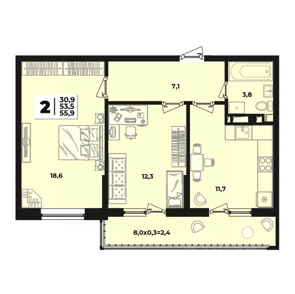 Продаётся 2-комнатная квартира в строящемся доме (Литер 2.2), срок сдачи: IV-кв. 2026, общей площадью 48.2 кв.м., на 2 этаже. Новый жилой комплекс "Лето" от застройщика "ГК Дарстрой" расположен по адресу город Краснодар, улица Западный Обход.