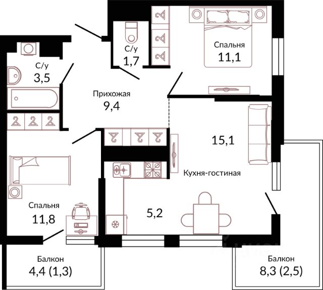 118 495 ₽/м²