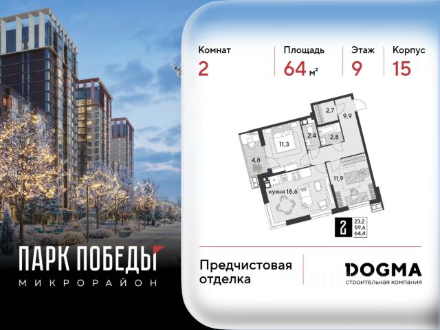 В продаже 2-комнатная квартира от застройщика! ЖК "Парк Победы 2", г. Краснодар, Литер 15 Срок сдачи: 1 кв. 2026, общей площадью 63.8 кв.м., на 8 этаже. Концептуально новый микрорайон "ПАРК ПОБЕДЫ" - это статная архитектура, вдохновленная наследием страны. Уникальное культурное пространство в стиле сталинского ампира, который отличает монументальность, классические пропорции и четкость линий. •Безбарьерная среда •Сквозные подъезды •Авторские лобби •Видовые квартиры с панорамным остеклением •Квартиры с мастер-спальнями и отдельными гардеробными •Потолки 3 метра •Улучшенная отделка от застройщика •Подземный паркинг и кладовые •Дворы без машин с видеонаблюдением •Круглосуточный пост охраны •Школа для 1 550 учеников •4 детских сада •Уличные тренажёры, зоны для пинг-понга и йоги •Крытый боксёрский ринг •Собственный пешеходный бульвар •Прогулочные аллеи с фонтаном •Коммерческие помещения на первых этажах Приобрести квартиру можно одним из способов: -субсидированная семейная ипотека 4,5 % на весь срок -рассрочка до конца строительства -оплата наличными -дистанционная покупка Позвоните сейчас и забронируйте квартиру со скидкой!