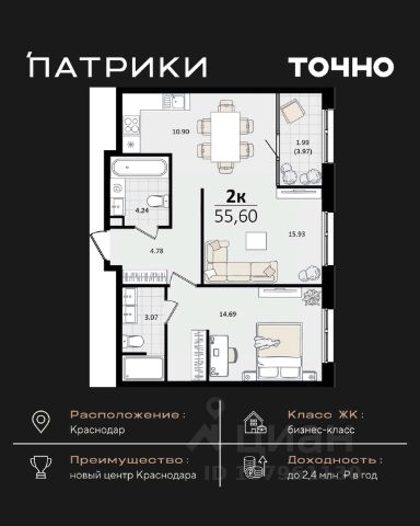 Флагманский проект группы компаний Точно - жилой комплекс бизнес-класса Патрики, это 10 домов разной этажности расположившихся на 28,5 гектарах. Жилой комплекс с концепцией город в город - прогулочные аллеи, парковая территория, 3 детских сада, 2 школы - одна из которых частная, Гранд аллея с ресторанами, фонтанами и модными бутиками, уникальные мафы и ландшафтный дизайн, создают особую атмосферу - место в котором хочется находиться. В Патриках предусмотрен и креативный кластер Цех, который включает в себя пространство для коворкинга, фудкорт, бутики, детский комплекс, лектории, фитнес-клуб Баланс с волной для сёрфа. Но и это еще не все ГК Точно уважает историю, поэтому мы сохранили 2 башни - наследство от завода "Сельмаш" исторический арт-объект назвали Мастер и Маргарита.