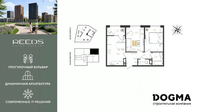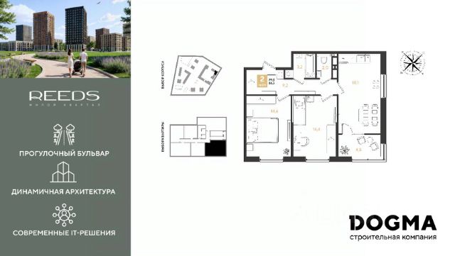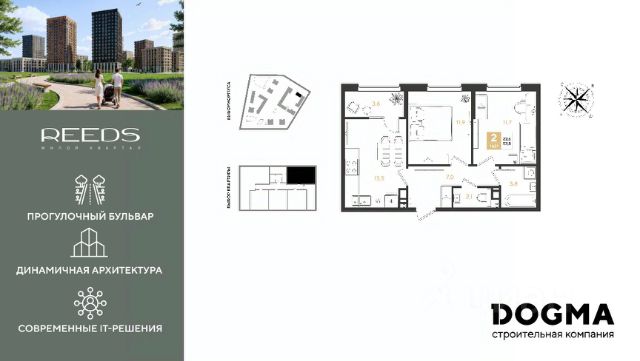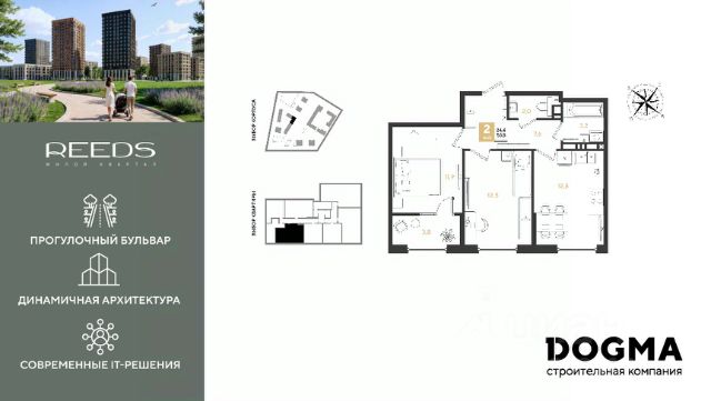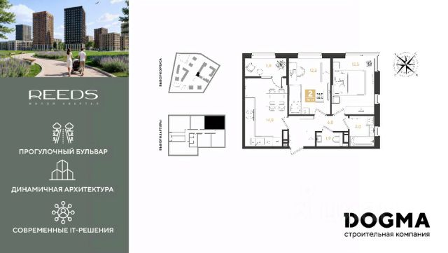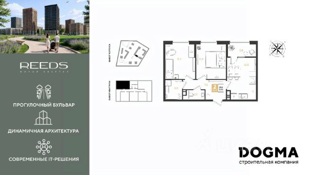 В продаже 2-комнатная квартира от застройщика! ЖК "REEDS" г. Краснодар, Литер 14 Срок сдачи: 4 кв. 2028, общей площадью 51.9 кв.м., на 7 этаже. Жилой квартал бизнес-класса "REEDS" баланс природы и урбанистики. Дома построены по монолитно-кирпичной технологии с использованием системы Куубер, что обеспечивает прочность и долговечность конструкции. Пространство, где качество жизни на высшем уровне. Архитектурно-художественная подсветка фасадов Персональный клуб для резидентов Планировки для современного образа жизни Готовая отделка с уверенностью в качестве Лобби премиум-класса Система безопасного хранения Видеонаблюдение по всему периметру и СКУД Среда без границ Эко-лаунж Многофункциональные спортивные зоны Подземный паркинг и индивидуальные хранилища Образовательный кластер: школа на 1850 мест и детский сад на 350 мест Специальные площадки для питомцев Умный дом Кафе и рестораны Приобрести квартиру можно одним из способов: ДОГМАТЕКА семейная 2,5 % на весь срок рассрочка до конца строительства оплата наличными дистанционная покупка Позвоните сейчас и забронируйте квартиру со скидкой!