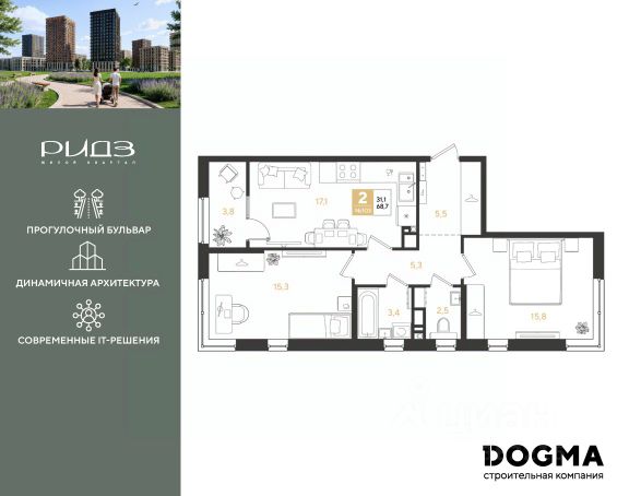 В продаже 2-к квартира от застройщика! ЖК "РИДЗ" г. Краснодар, Литер 5. Срок сдачи: 3 кв. 2028, общей площадью 58.3 кв.м., на 8 этаже. Жилой квартал бизнес-класса "РИДЗ" баланс природы и урбанистики. Дома построены по монолитно-кирпичной технологии с использованием системы Куубер, что обеспечивает прочность и долговечность конструкции. Пространство, где качество жизни на высшем уровне. - Архитектурно-художественная подсветка фасадов; - Персональный клуб для резидентов; - Планировки для современного образа жизни; - Готовая отделка с уверенностью в качестве; - Лобби премиум-класса; - Система безопасного хранения; - Видеонаблюдение по всему периметру и СКУД; - Среда без границ; - Эко-лаунж; - Многофункциональные спортивные зоны; - Подземный паркинг и индивидуальные хранилища; - Образовательный кластер: школа на 1850 мест и детский сад на 350 мест; - Специальные площадки для питомцев; - Умный дом; - Кафе и рестораны. Приобрести квартиру можно одним из способов: - ипотека; - рассрочка до конца строительства; - оплата наличными; - дистанционная покупка. Позвоните сейчас и забронируйте квартиру!