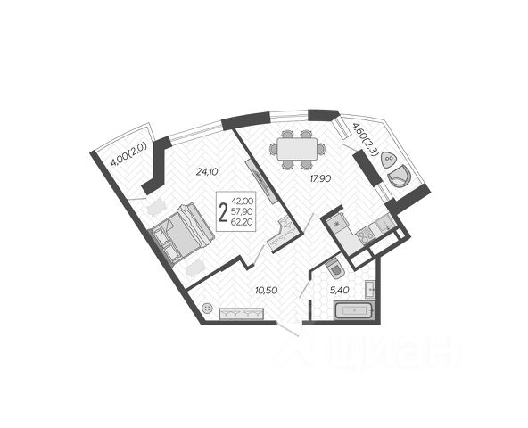 2-к 65 м², Краснодар, Прикубанский округ — семейная планировка, дом 2023 года. Ищете квартиру, где хватит места для дружной семьи без лишней суеты?