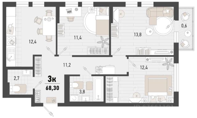 Жилой район "Народные кварталы" Комфортный мир, где каждая деталь создана для удобства и гармонии. Что порадует в домах: Дизайнерские входные группы с просторными колясочными и велосипедными — все для комфорта с первого шага. Монолитно-кирпичная технология строительства гарантирует тепло, надежность и долговечность. Высота потолков до 3,9 м наполняет пространство светом и воздухом, создавая ощущение свободы. Предчистовая отделка избавит от пыльных и шумных работ — вы сможете сразу же начать обустраивать свой новый дом по своему вкусу. Первые этажи предназначены для коммерческой недвижимости, что обеспечивает удобство и доступность всех необходимых услуг. О придомовой территории: Просторные пешеходные зоны, пандусы и гостевые парковочные места создают комфортную среду для прогулок и отдыха всей семьи. Закрытая охраняемая территория с видеонаблюдением обеспечит вам полное спокойствие и безопасность. Многоуровневый паркинг на 5000+ машиномест — забудьте о проблемах с парковкой! Детские и спортивные площадки, зеленый бульвар — идеальное место для активного отдыха и общения с соседями. Три детских сада по 350 мест и школа на 1550 мест — все для удобства ваших детей. Более 18 000 м² пространства для занятий спортом: футбол, баскетбол или теннис — выберите то, что вам по душе! Все необходимое — на расстоянии вытянутой руки: ТРЦ "Красная Площадь", "Метро", "Стрелочка" — шопинг и развлечения для всей семьи. Супермаркеты, аптеки, рестораны и остановки общественного транспорта — все для вашего комфорта. Прямая продажа от застройщика. Живите там, где удобно, где уютно и где всегда рядом все, что нужно для жизни. Выбирайте ЖР "Народные кварталы". 3-комнатная квартира, примерная площадь 70 м2 в Краснодарском крае.