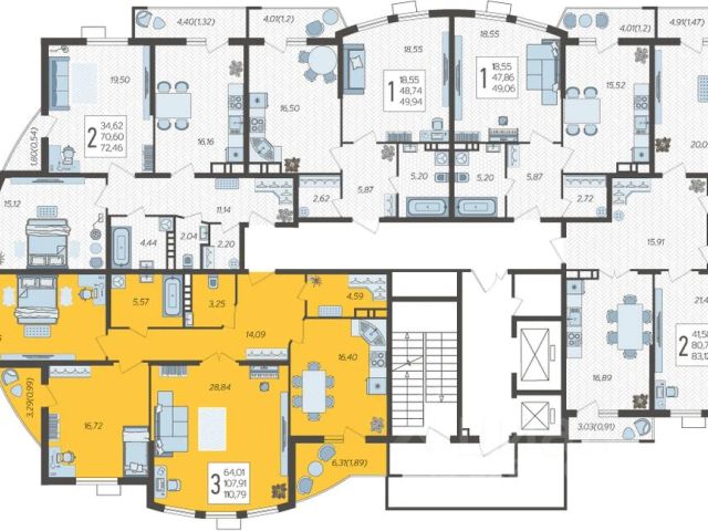 Квартира в черновой отделке от застройщика (у вас есть уникальная возможность сделать ремонт на свой вкус). Просторный холл почти 20 м2, кухня 15,3 м2 с выходом на лоджию, гостиная 24,7 м2, две спальни по 15 м2 расположены на разные стороны (с выходом на лоджии), санузел раздельный.