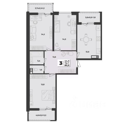 • ✓ В базе Циан 55 3-комнатных квартир без ремонта на улице Имени Генерала Корнилова в городе Краснодар