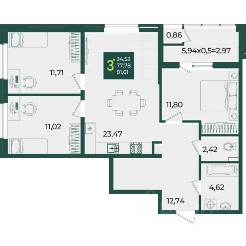 • ✓ В базе Циан 2,6 тыс. 3-комнатных квартир без ремонта в Краснодаре
