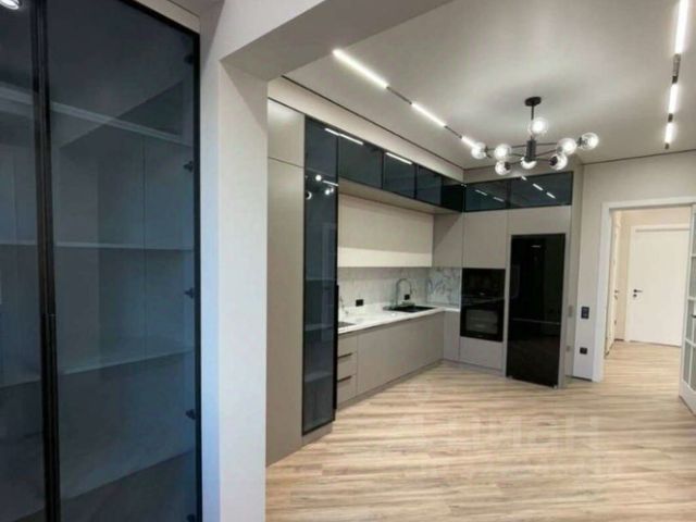 Кухня - гостиная на которой отлично смотрится дизайнерский гарнитур с автоматическими доводчиками, столешница и барная стойка из искусственного камня, встроенная бытовая техника BOSH остается будущему хозяину! (холодильник, варочная панель, микроволновая печь, духовой шкаф, стиральная машина, островная вытяжка), .