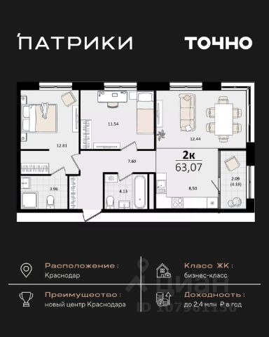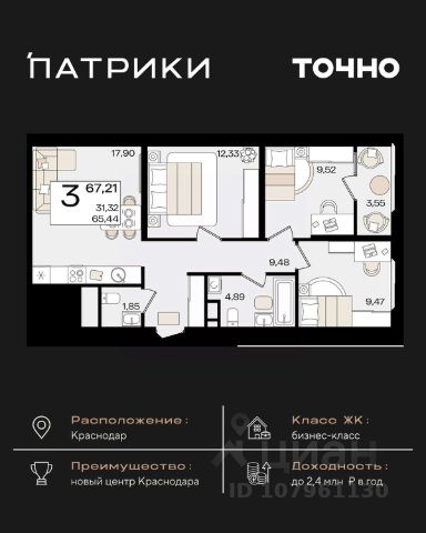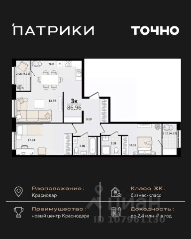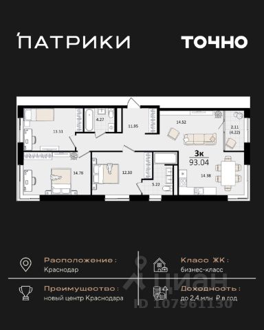 Продаётся 3-комнатная квартира в строящемся доме (Дом 100/8), срок сдачи: II-кв. 2026, общей площадью 92.57 кв.м., на 10 этаже. Новый жилой комплекс "Альфа" от застройщика "Телекомстрой" расположен по адресу город Краснодар, Уральская улица.