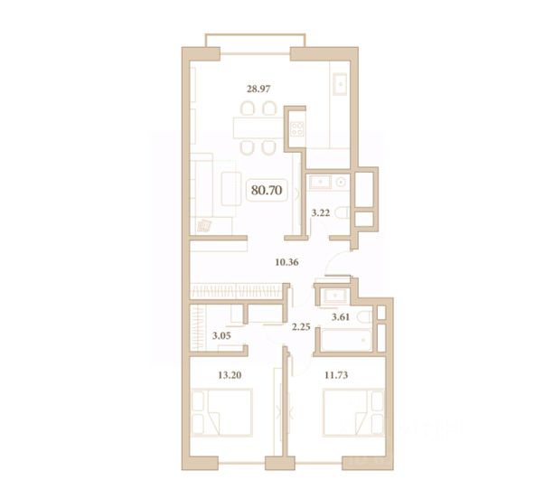 Монолитно-блочная технология строительства позволила свести к минимуму число несущих элементов внутри квартиры. Зонируйте пространство так, как удобно вам. Предлагаем ремонт от застройщика: профессиональный дизайн-проект, три класса отделки.