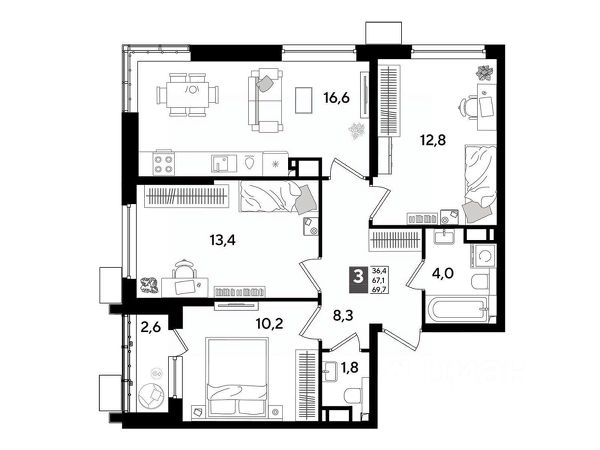 В продаже 3-комнатная квартира от застройщика! Мкр. "DOGMA PARK" г. Краснодар, Литер 31 Срок сдачи: 3 кв. 2027, общей площадью 69.7 кв.м., на 12 этаже. DOGMA PARK-это новый микрорайон, сочетающий в себе стильную архитектуру современного города, и настоящий зеленый оазис, который расположится прямо во дворе. Первая очередь проекта расположена в непосредственной близости от собственного ЭКО-парка. • Собственный парк 7,3 га • Благоустройство всего МКР 5,5 Га • Безбарьерная среда • Дизайнерские лифтовые холлы • Быстрые бесшумные лифты • Подземный паркинг и кладовые • Зарядные устройства для электромобилей • Панорамные виды из квартир с витражным остеклением • Просторные дворы • Прогулочные пешеходные аллеи • Велодорожка • Воркаут-зоны • 3 школы и 5 детских садов • Современные детские площадки • Баскетбольная и универсальная спортивные площадки • Медицинская клиника • Фитнес-центр с бассейном • Торгово-развлекательный центр • Охрана на территории микрорайона Приобрести квартиру можно одним из способов: -субсидированная семейная ипотека 4,5 % на весь срок -рассрочка до конца строительства -оплата наличными -дистанционная покупка Позвоните сейчас и забронируйте квартиру со скидкой!