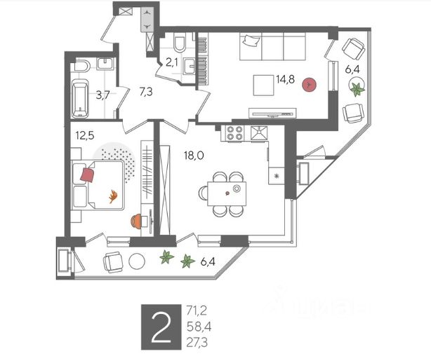• ✓ В базе Циан 1 3-комнатных квартир на 12 этаже в микрорайоне Школьный в городе Краснодар