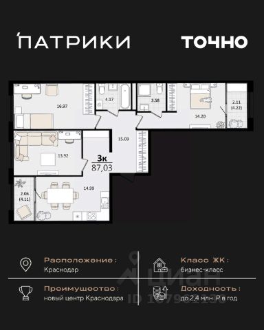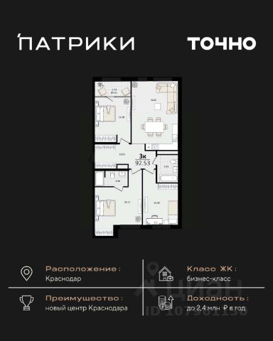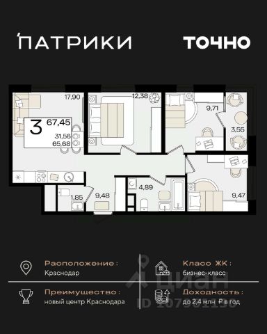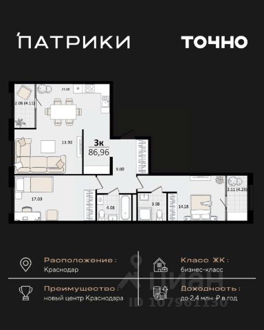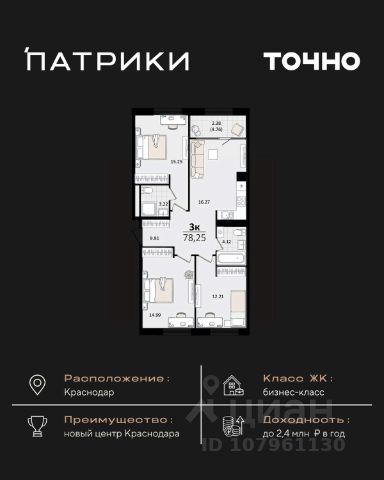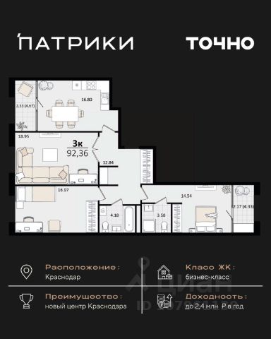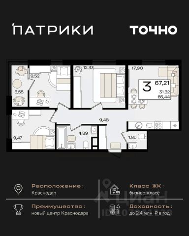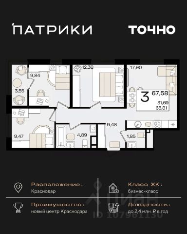 Продаётся 3-комнатная квартира в строящемся доме (Дом 100/8), срок сдачи: IV-кв. 2025, общей площадью 92.48 кв.м., на 13 этаже. Новый жилой комплекс "Альфа" от застройщика "Телекомстрой" расположен по адресу город Краснодар, Уральская улица.
