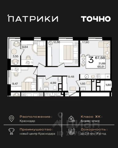Продаётся 3-комнатная квартира в строящемся доме (Дом 100/8), срок сдачи: II-кв. 2026, общей площадью 92.53 кв.м., на 13 этаже. Новый жилой комплекс "Альфа" от застройщика "Телекомстрой" расположен по адресу город Краснодар, Уральская улица.
