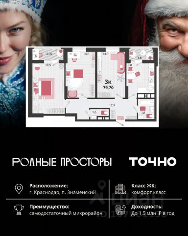 "Родные просторы"- самодостаточный микрорайон, который реализован по принципу комплексного развития территории, где есть вся инфраструктура для комфортной жизни. На территории 41 га 29 домов от 9 до 24 этажей, уютные дворы со спортивными и игровыми площадками, социальные и коммерческие объекты, зеленые массивы и фонтаны. Главная точка притяжения "Родных просторов" - парк семейного отдыха площадью 9 га, 4,5 км прогулочных аллей, амфитеатр для мероприятий, кинофестивальная площадка. Особая гордость микрорайона современная школа на 1550 мест и 3 детских сада "Ладушки", "Веснушки" и "Топотушки" на 880 малышей. В центре микрорайона строятся фитнес-клуб BALANCE с акватермальным комплексом и собственная поликлиника, площадью более 5000 кв.м. Уже открыт православный храм Святых Первоверховных апостолов Петра и Павла.