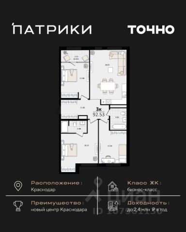 Продам 3х комнатную квартиру дом готов на 93%, сдача декабрь 2024г. Полноценная трехкомнатная квартира с гардеробом(евро 4к.кв.), с двумя балконами из кухни и из спальни. Большая  гостиная с эркером 28,2 м. В доме два скоростных лифта, 1 пассажирский и 1 грузовой марки Wellmax. Через лифт так же будет доступ на парковку в стилобате.