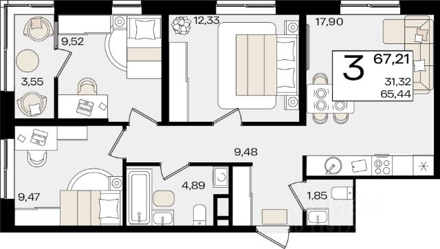 Продаётся 3-комнатная квартира в строящемся доме (Дом 100/8), срок сдачи: II-кв. 2026, общей площадью 92.54 кв.м., на 14 этаже. Новый жилой комплекс "Альфа" от застройщика "Телекомстрой" расположен по адресу город Краснодар, Уральская улица.