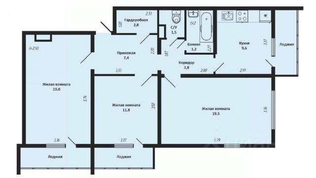 - гостиная 17,1 кв.м.