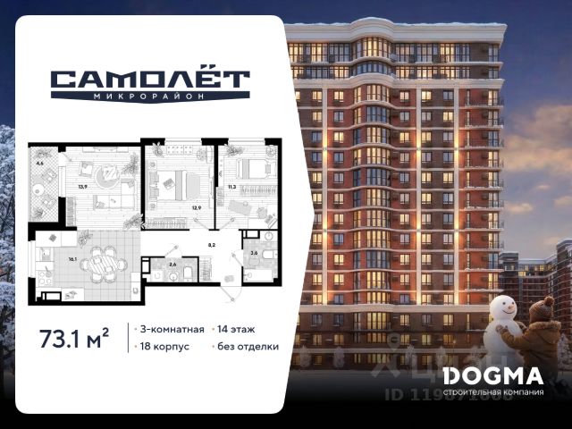 Параметры и Особенности Квартиры: Общая площадь: 75,9 кв. м значительное преимущество для 3-комнатного формата!