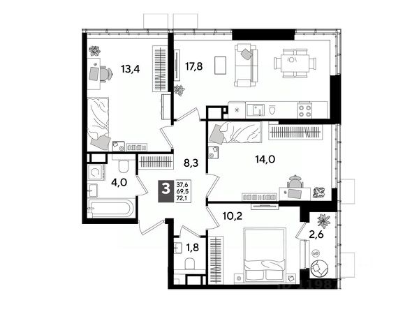 В продаже 3-комнатная квартира от застройщика! Мкр. "DOGMA PARK" г. Краснодар, Литер 34 Срок сдачи: 4 кв. 2027, общей площадью 69.7 кв.м., на 16 этаже. DOGMA PARK-это новый микрорайон, сочетающий в себе стильную архитектуру современного города, и настоящий зеленый оазис, который расположится прямо во дворе. Первая очередь проекта расположена в непосредственной близости от собственного ЭКО-парка. • Собственный парк 7,3 га • Благоустройство всего МКР 5,5 Га • Безбарьерная среда • Дизайнерские лифтовые холлы • Быстрые бесшумные лифты • Подземный паркинг и кладовые • Зарядные устройства для электромобилей • Панорамные виды из квартир с витражным остеклением • Просторные дворы • Прогулочные пешеходные аллеи • Велодорожка • Воркаут-зоны • 3 школы и 5 детских садов • Современные детские площадки • Баскетбольная и универсальная спортивные площадки • Медицинская клиника • Фитнес-центр с бассейном • Торгово-развлекательный центр • Охрана на территории микрорайона Приобрести квартиру можно одним из способов: -субсидированная семейная ипотека 4,5 % на весь срок -рассрочка до конца строительства -оплата наличными -дистанционная покупка Позвоните сейчас и забронируйте квартиру со скидкой!