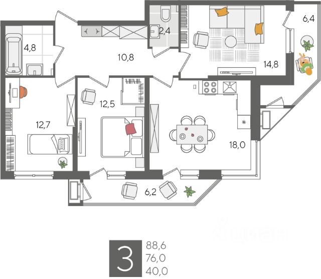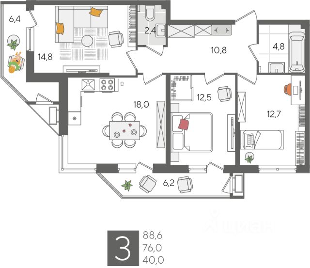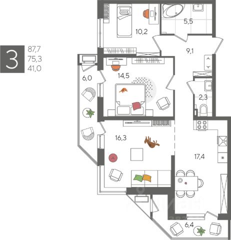 Детская 10.50 кв.м. Обустройство частично не закончено, не хватает люстр, бра, возможно кому мебели, есть возможность внести свой дизайн после покупки. Пол ламинат уложен елочкой. Шумоизоляция во всех комнатах. Квартира имеет одну лоджию, где можно организовать лаунч или рабочую зону.